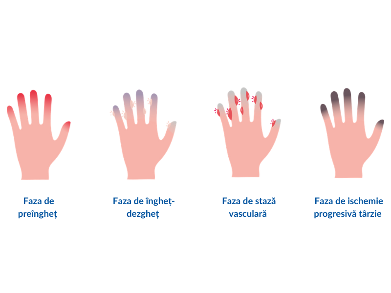 În literatura medicală există mai multe faze premergătoare apariției degerăturilor.